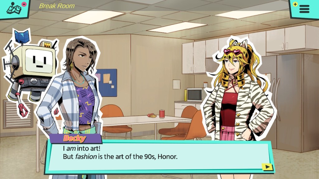 Again, I cannot state enough – I think Hato Moa did a great job with the character designs. In fact, it’s because she did such a great job that I am convinced that those character briefs she was given didn’t emphasize the whole “set in 1996” aspect, let alone provide accurate reference material. And I was ready to give Mediatonic a pass too, until I went to their website and saw that ‘90’s fashion’ was a specific talking point in their ad for the game.