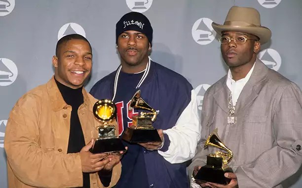 Left to right: Shania Twain, Naughty by Nature, and Mariah Carey