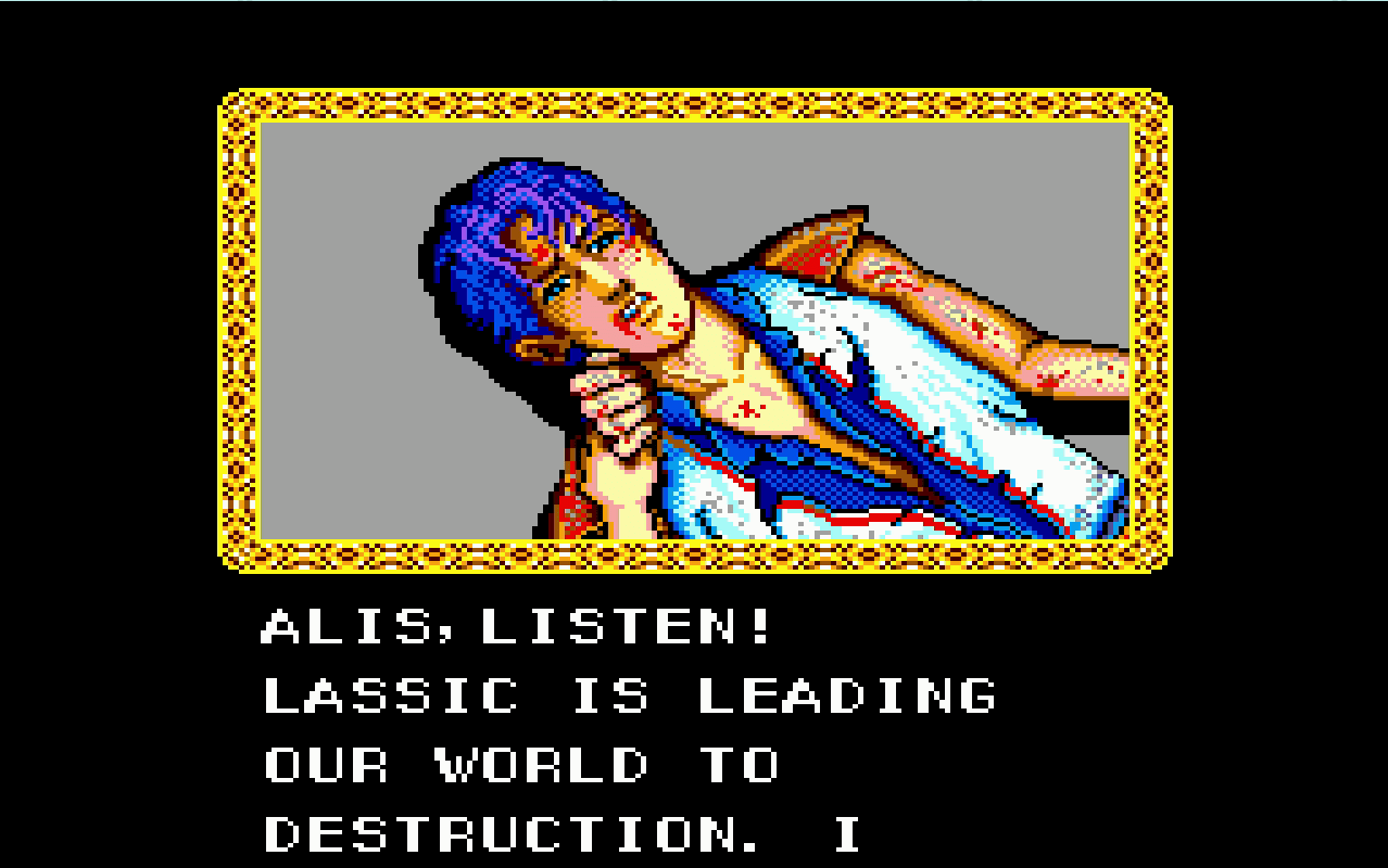 The game starts out with your dying brother telling you, Alis, how much King Lassic sucks.