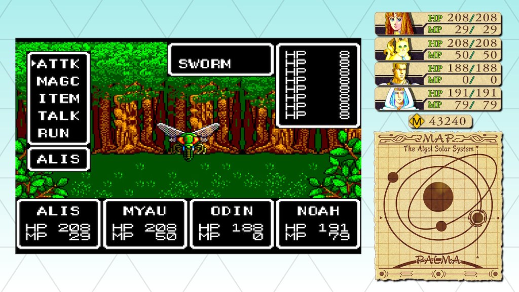All in all, I agree that the SEGA AGES port available on Nintendo Switch is a great way to play the original Phantasy Star without the pain of meticulously mapping out each dungeon. The last Switch port of an old game I played was Fire Emblem:SDATBOL (no that really is the acronym), and that was much worse. Do not recommend. The third Fire Emblem game is a better version of the first one for a reason.