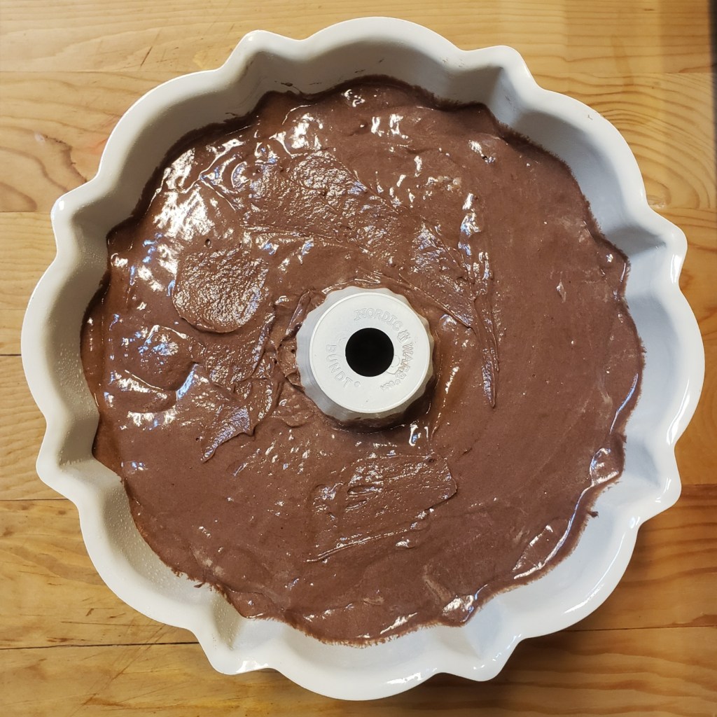So I rifled through the recipes I set aside for a rainy day and found this ol’ chestnut: Chocolate Potato Cake. I’ve even mentioned this in a previous post. My parents really enjoy chocolate cake, and I did want an excuse to buy a proper Bundt cake pan (not necessary, but it adds to the retro charm), so here we are.