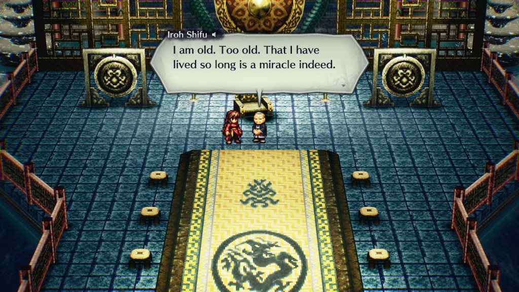 Again, putting the painful dialog in the Middle Ages aside, I really think the remake should have just let me live-a-live. By that I mean, give the player the ability to decrease or remove random encounters entirely. The graphics were nice, the music was nice, but at the end of the day, it’s about the gameplay, and too many times I didn’t want to play because of the encounter rate.