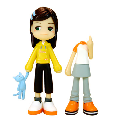 Pinky:st dolls were put out by a company called Vance Project, working with the artist BABYsue. I don’t know much about either, but I’m listing the information here in case it’s useful for people more familiar with the figure world. The big selling point of these small plastic figures was their interchangeability.