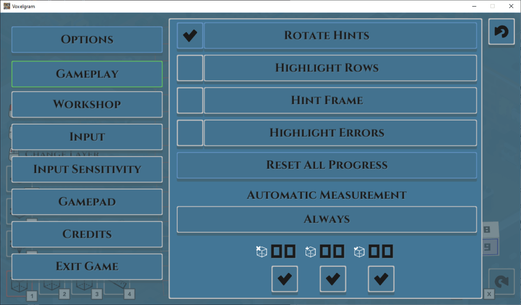 If you asked me whether or not I would recommend Voxelgram, I would say yes, as it’s currently the only 3D nonogram game I know of readily available on PC. I think that is really its biggest selling point, at the end of the day. We’ll put aside that some of the English text could have used a round of editing. (Please know, whenever I make this critique, it’s as someone who has been employed doing this exact thing who now struggles to find these freelance opportunities. I see an easy job I would have enjoyed lost. I don’t even cost that much!)