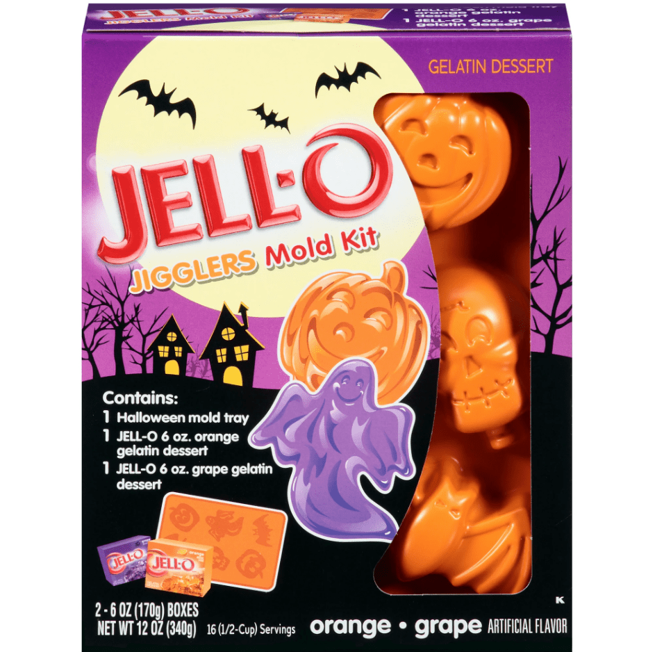 It’s not that there weren’t any interesting recipes, but rather their reliance on a Halloween Jell-o staple: Grape. Besides being an appropriate hue as-is, Grape Jell-o has the strange distinction of taking on a distinctly…creepy color when combined with anything white and creamy, like ice cream or yogurt.