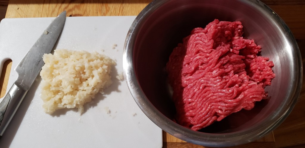 No, there’s a bit more to it. The ground beef mix has you add finely diced water chestnuts (pictured above) and soy sauce. A little too much soy sauce, honestly, but the crunch from the water chestnuts I think was successful. I can totally see other people not enjoying the difference in texture, though.