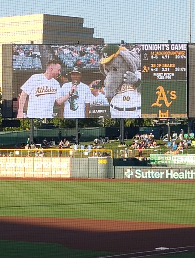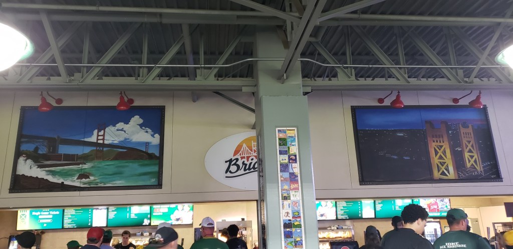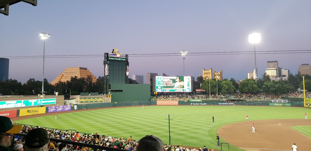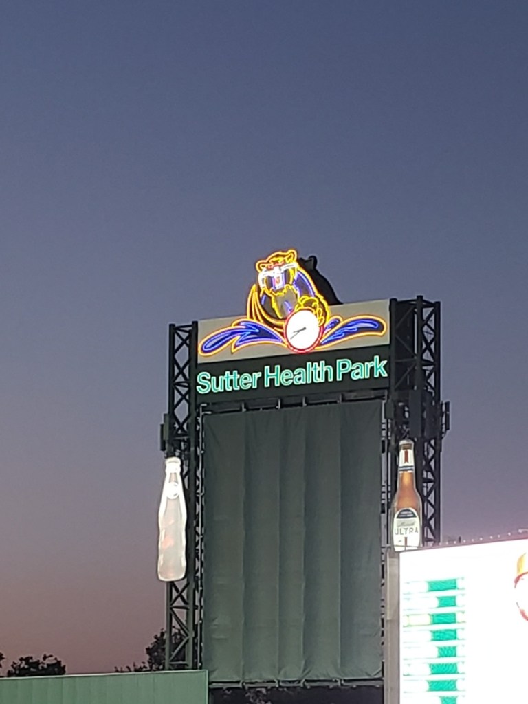 A quick aside for those who don’t follow sportsball news – the A’s are in a sad state of purgatory this baseball season. Part of that means they now play their games at Sutter Health Field (formerly Raley Field) right across the river from Downtown Sacramento and the home of local minor league team the River Cats. Speaking of formerly, they were the Oakland Athletics, and played in, you guessed it, Oakland, until this year. Now they’re just The Athletics and they play in West Sac. Not to like, bag on West Sac so much as “they now play in a minor league stadium that has a big river cat next to the scoreboard”.