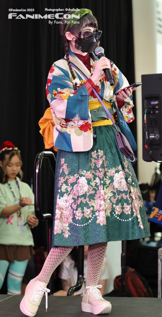 The calm before the storm, for me at least. One of my recurring jobs is to give a short presentation at Opening Ceremonies about the J-Fashion Department. Since I taught in front of a classroom/lecture hall for 10-ish years, I have zero fear of public speaking, so this is a very chill job for me. This year the official account actually posted a few photos of me snapped by other photogs while I presented, although the second one makes me glad I wore a longer skirt…