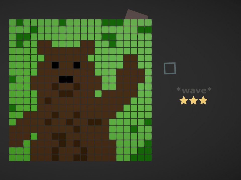 While some of the art is rather charming, there’s also consistently some reverse “Draw the rest of the owl” going on with some of the puzzles. However, I’m guessing this was a conscious choice to try to keep the solves more interesting, the sentiment of which I appreciate, if not the execution. To be more specific, many times puzzles have like, a few random particles thrown in that disappear in the completed picture.