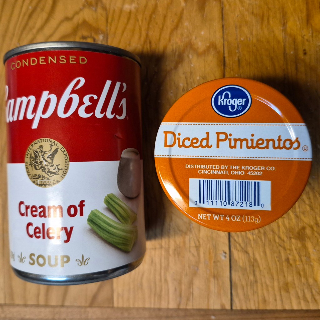The pimientos also tasted like nothing, although I’ve heard that’s typical of low-quality jarred ones. They did provide a nice pop of color, so I see the vision. Substituting these with chopped fresh bell pepper is prolly the 21st century way to go.